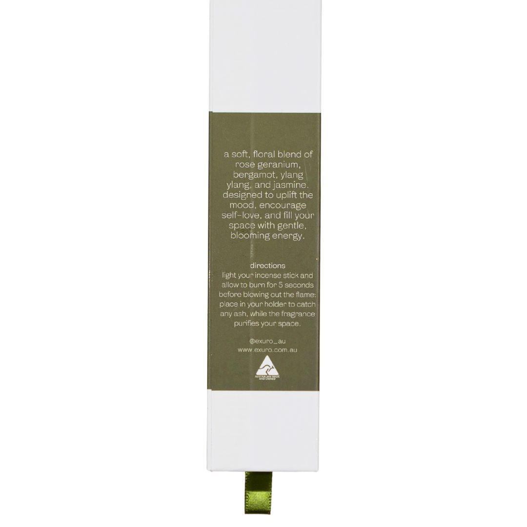 I was anxiously awaiting Bloom arriving after I got the email announcing it's beginnings! Exuro incense is my favourite and my ultimate go-to is Elevate... In short Bloom had a lot to live up to... And burning Bloom for the first time, I can say it is absolutely lovely... It's a sweet and complex fragrance noting Jasmine as a top note and I can also smell bergamot, finishing of with some subtle, yet beautiful notes of rose geranium... all in a base of ylang-ylang... It is a beautiful enticing floral scent - and it smells expensive and premium... 5 stars!