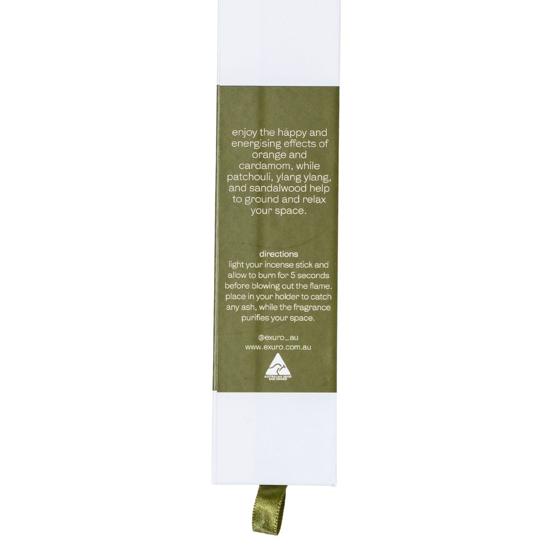 enjoy the happy and energising effects of orange and cardamom, while patchouli, ylang ylang and sandalwood help to ground and relax your space.